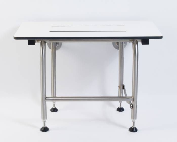 • Phenolic folding shower seat manufactured from 1" (25mm) diameter, 18 gauge and 1.25" x 1.25" (32mm x 32mm), 16 gauge, type 304 stainless steel tubing with #4 satin finish.