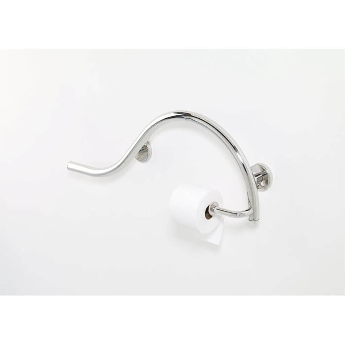 A beautiful, high-falling curve that combines the functionality of a grab bar with the convenience of a toilet paper holder.